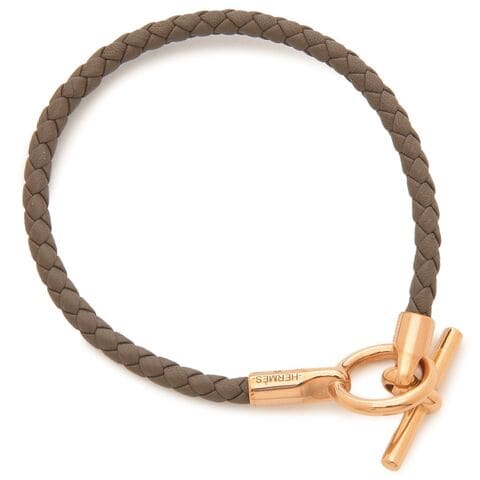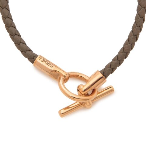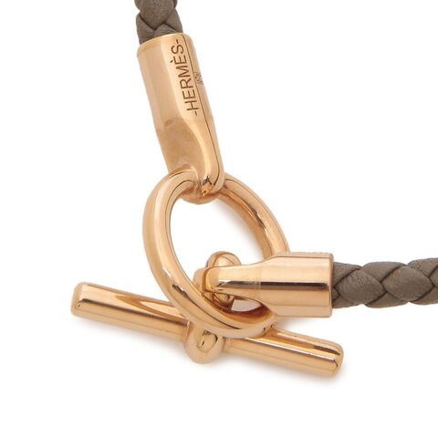 エルメス ブレスレット バングル グレナン エトゥープ ピンクゴールド金具 グレー レディース HERMES H071681 FO 18 GLENAN ETOUPE SWIFT