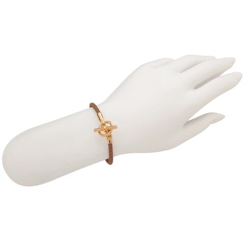 エルメス ブレスレット バングル グレナン ゴールド ピンクゴールド金具 ブラウン レディース HERMES H071681 FO 37 GLENAN GOLD SWIFT