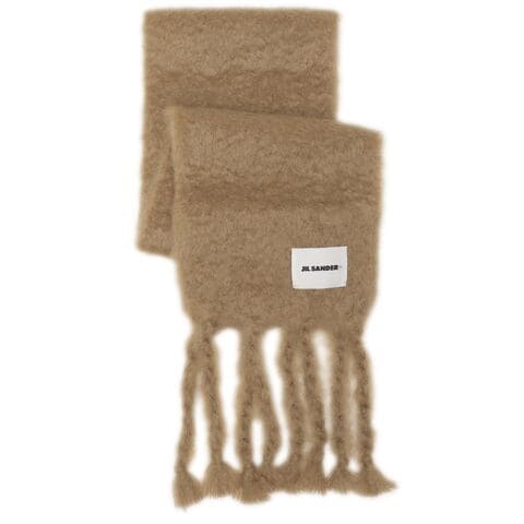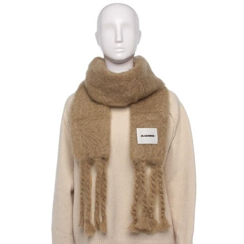 JIL SANDER(ジルサンダー)のマフラーが入荷しました☆大きめのフリンジとロゴタグが目を引く一品です。落ち着いたカラーリングで、さまざまなコーディネートに合わせられます。首元をしっかりと包み込むボリューム感もポイント。ユニセックスデザインのため、男女問わずにお使いいただけます。