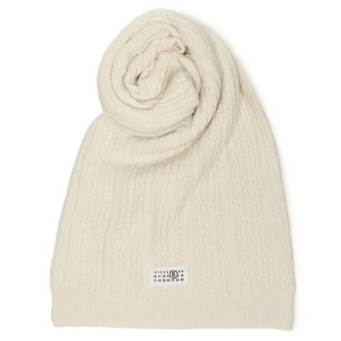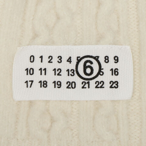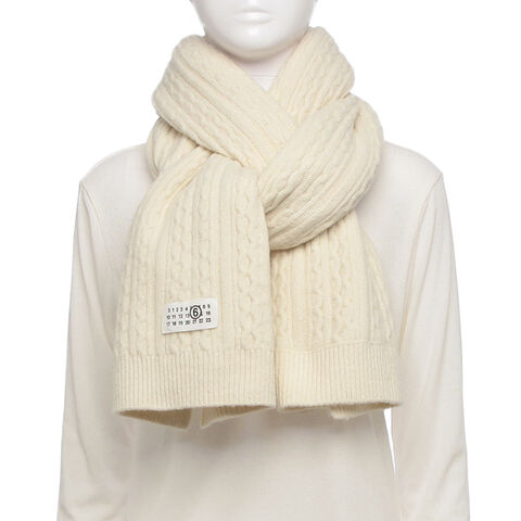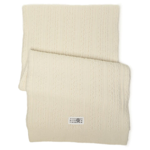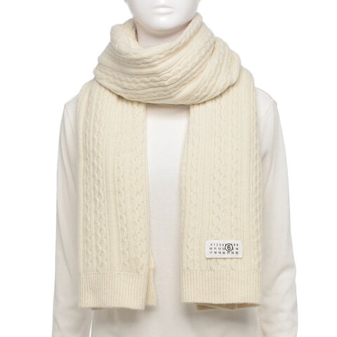 MM6 Maison Margiela(エムエムシックス メゾンマルジェラ)のマフラーが入荷しました☆ケーブル編みのリブデザインが立体感のある表情を演出するアイテムです。先端付近にはカレンダータグをあしらい、ブランドらしいアクセントをプラスします。柔らかな色合いで顔周りを明るく彩り、幅広いスタイリングに合わせやすいのも魅力です。