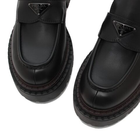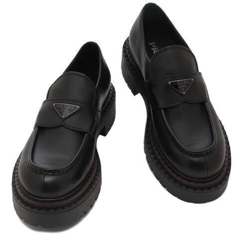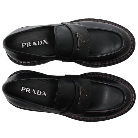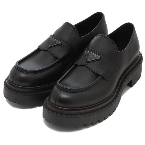PRADA(プラダ)のローファーが入荷しました☆エナメルメタルのトライアングルロゴ付きのバンドが特徴のローファー。ややボリュームのあるチャンキーラバーソールがポイントです。洗練された上質な風合いも魅力。カジュアルやトラッドスタイルなど、様々なコーディネートをお楽しみいただけます。