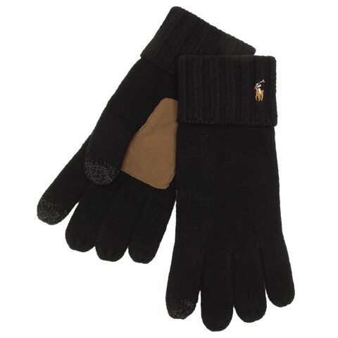 ポロラルフローレン 手袋 シグネチャー メリノ タッチ グローブ ブラック ブラウン メンズ RALPH LAUREN PC0494 002 SIGNATURE MERINO TOUCH GLOVES W LEATHER PATCH BLACK スマホ対応 レザーパッチ