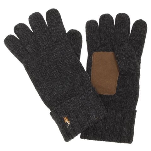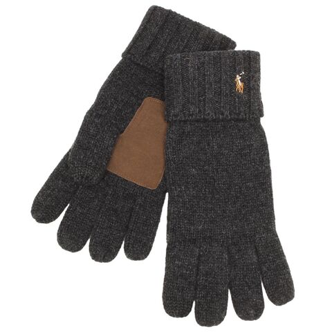 ポロラルフローレン 手袋 シグネチャー メリノ タッチ グローブ グレー ブラウン メンズ RALPH LAUREN PC0494 012 SIGNATURE MERINO TOUCH GLOVES W LEATHER PATCH CHARCOAL スマホ対応 レザーパッチ