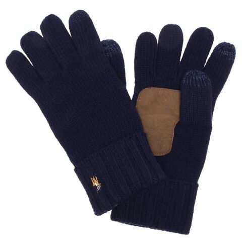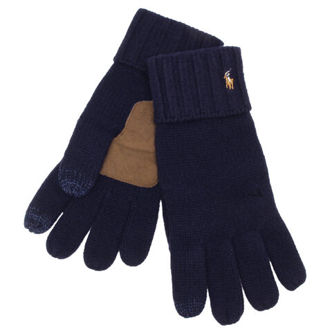 ポロラルフローレン 手袋 シグネチャー メリノ タッチ グローブ ネイビー ブラウン メンズ RALPH LAUREN PC0494 433 SIGNATURE MERINO TOUCH GLOVES W LEATHER PATCH HUNTER NAVY スマホ対応 レザーパッチ
