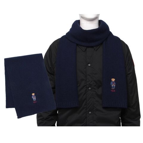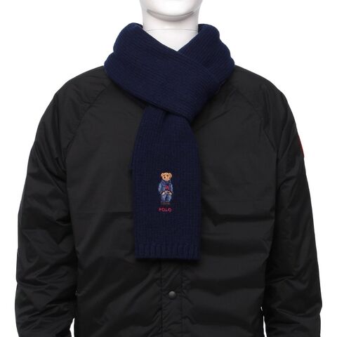 ポロラルフローレン マフラー ソリッド デニム ベア スカーフ ポロベア ニット ネイビー メンズ RALPH LAUREN PC1464 433 SOLID DENIM BEAR SCARF HUNTER NAVY