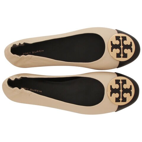 トリーバーチ パンプス クレアキャップトゥバレエ ベージュ ブラック レディース TORY BURCH 148336 001 CLAIRE CAP-TOE BALLET NEW CREAM BLACK GOLD