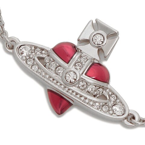 ヴィヴィアンウエストウッド ブレスレット バングル ディアマンテハート シルバー レッド レディース VIVIENNE WESTWOOD 6102021T 02P383 NEW DIAMANTE HEART BRACELET PLATINUM CRYSTAL INDIAN PINK