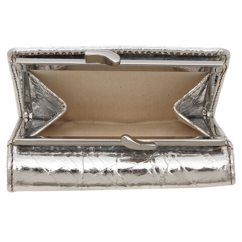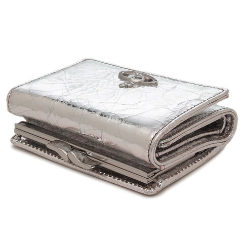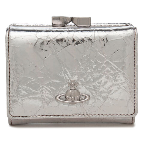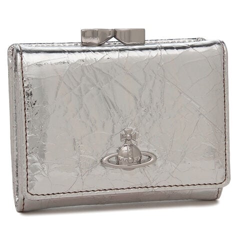 ヴィヴィアンウエストウッド 三つ折り財布 がま口 シルバー レディース VIVIENNE WESTWOOD 5115002MW L00A7 P403 METALLIC CREASY LEATHER SMALL FRAME WALLET LIGHT GRAY ミニ財布 オーブ ラメ