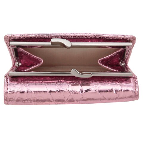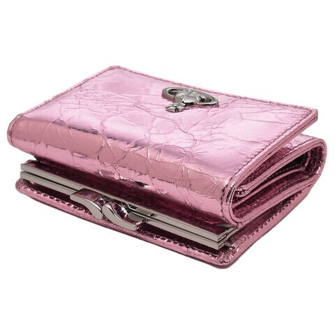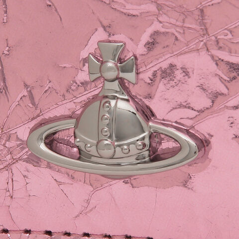 ヴィヴィアンウエストウッド 三つ折り財布 がま口 ピンク シルバー レディース VIVIENNE WESTWOOD 5115002MW L00A7 G404 METALLIC CREASY LEATHER SMALL FRAME WALLET PINK GOLD ミニ財布 オーブ ラメ