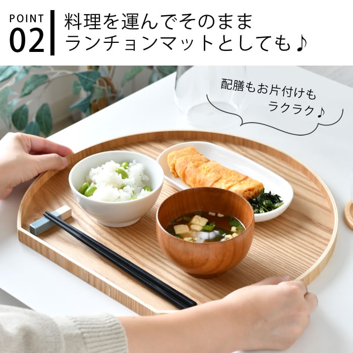 料理の美しさが引き立つ どんな食卓にも映える半月型の木製トレー。汚れてもサッと拭けるのでお手入れが簡単です。 お料理を運んでそのままランチョンマットとしてお使いいただけ、配膳もお片付けもラクチン。 普段の朝食や夕食など、お正月シーンや記念日にもぴったりです! また、小物などを置いてインテリアとしてもお使いいただけます。 ![]() ![]() ![]() ![]() ![]() ![]() ![]() ![]() ![]() ![]() |