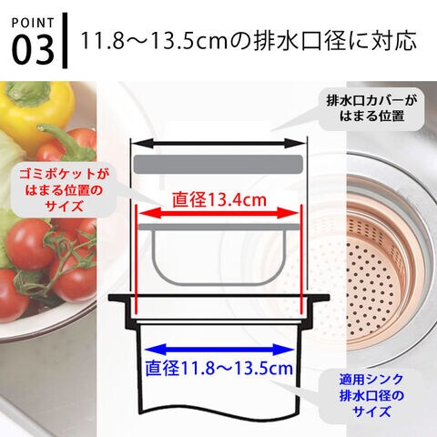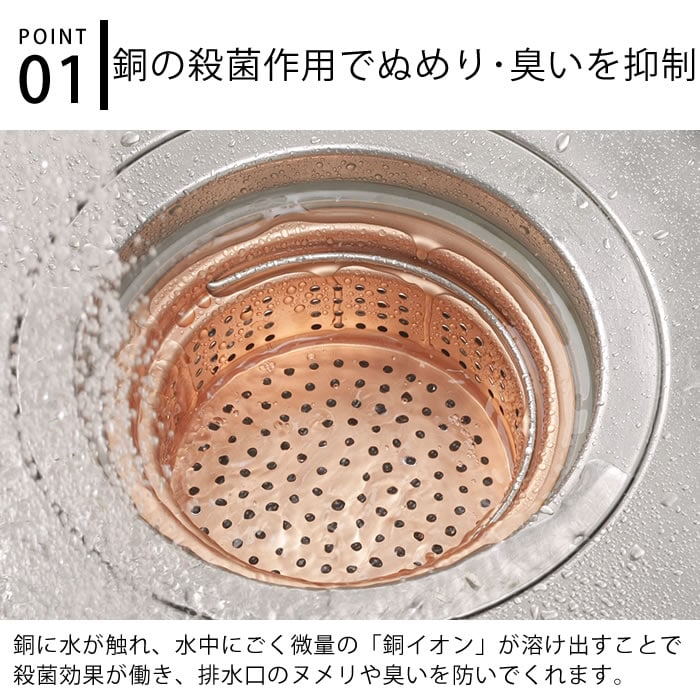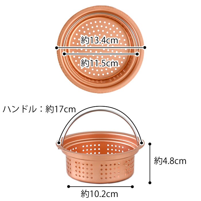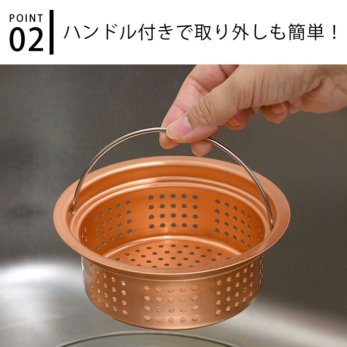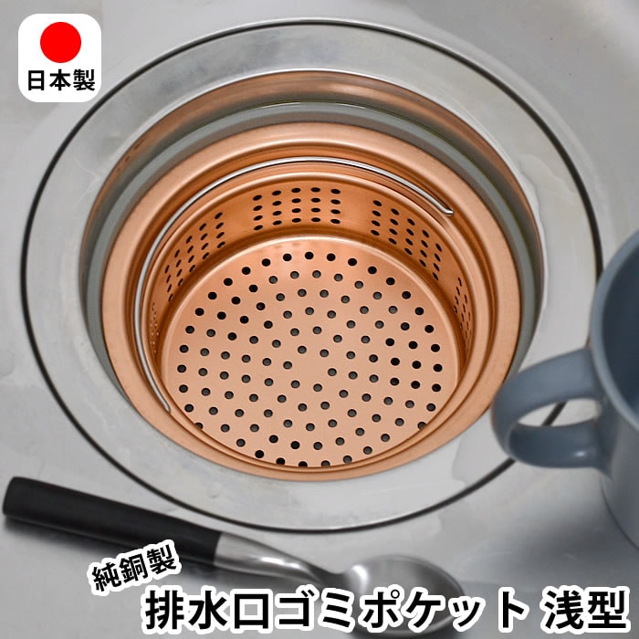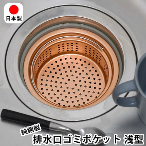 排水口 ゴミ受け 純銅製ゴミポケット 浅型 排水口ストレーナー キッチン ハンドル付き 流し台 シンク 日本製 ぬめり防止 13.5cm 殺菌作用 ごみ受け 燕三条 防臭 衛生的 銅イオン 水回り 台所