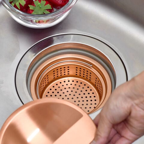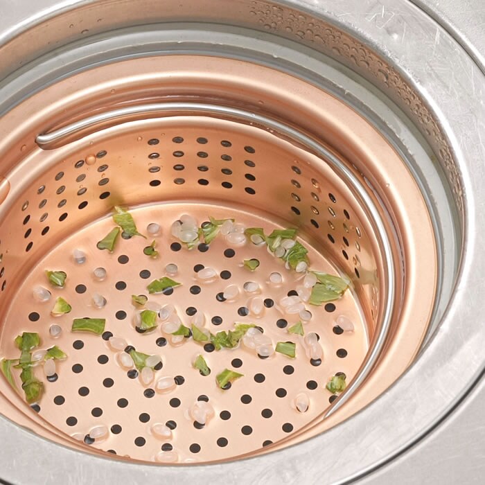 別ページの「銅製 排水口カバー」とセットで使えばゴミポケットの目隠しになります。