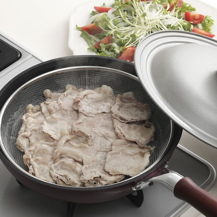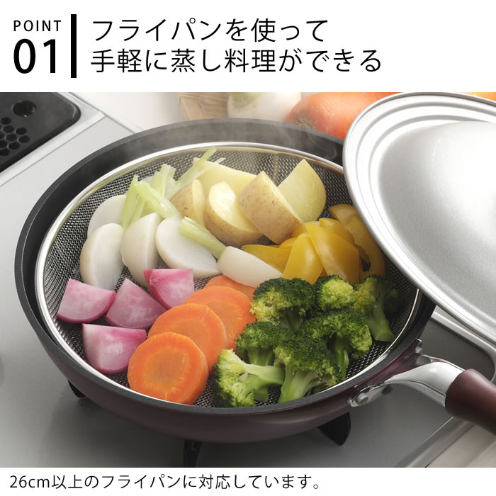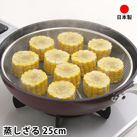 フライパンを使って手軽に蒸し料理ができる「ステンレス蒸しざる 25cm」。