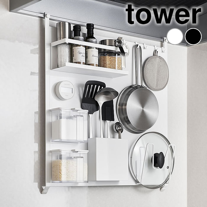 キッチンパネル おしゃれ レンジフードスチールパネル タワー tower スチールパネル マグネット 収納 壁面パネル 調味料 レンジフード 引っ掛け キッチンツール 山崎実業 yamazaki ヤマジツ タワーシリーズ 1735 1736