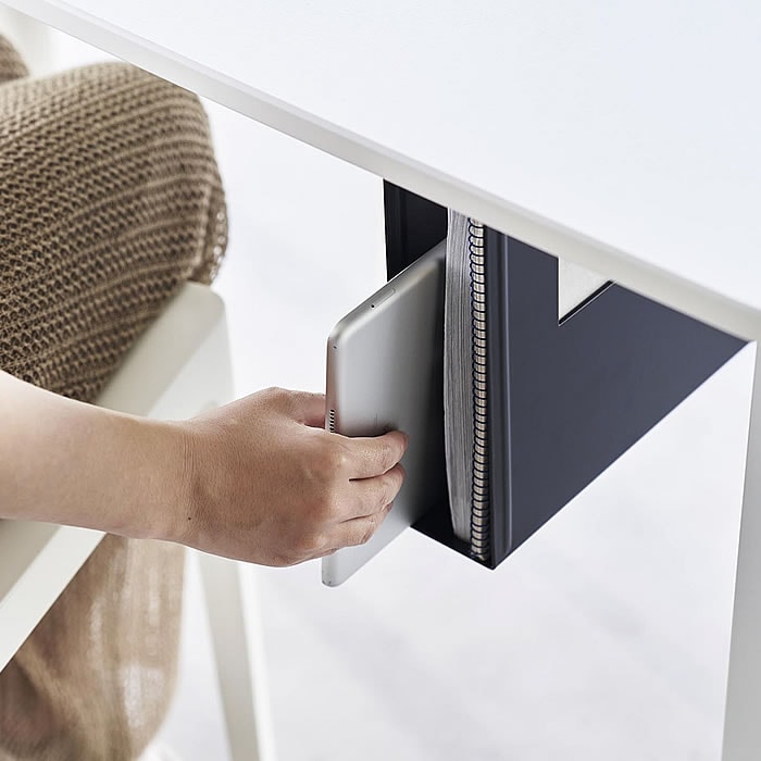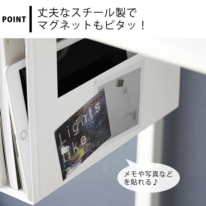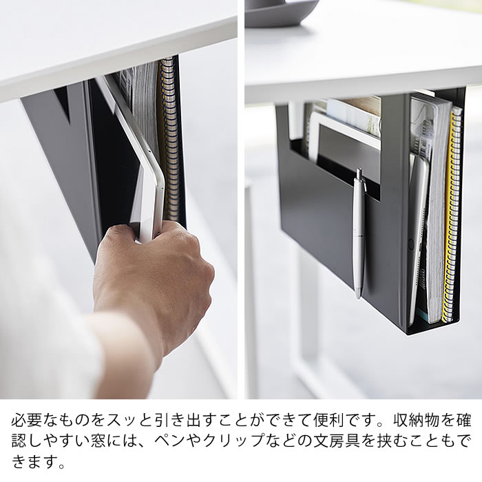 A4サイズがすっきり収まる 書類やタブレットなどA4サイズまでのアイテムをデスク下に収納。 手元にあると便利なものが多い、散らかりがちなデスクの上がスッキリ。 必要なときに使いたいものをスッと引き出せます。 マグネットがつくのでメモなどを貼ることができ、収納物を確認しやすい窓にはペンなど文房具も挟めるので便利です。 ![]() ![]() ![]() ![]() ![]() ![]() ![]() ![]() ![]() |