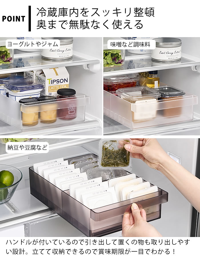 冷蔵庫の中をスッキリ整頓 冷蔵庫中収納シリーズを並べて冷蔵庫の中をスッキリ整頓!冷蔵庫の奥まで無駄なく使えるワイドな仕切り付き収納ケース。 味噌や漬物など大きめのパックをまとめて収納。ハンドルが付いているので、ラクに引き出せて奥の物も取り出しやすい設計。 複数揃えて使用すれば、さらに冷蔵庫内がすっきりします。食器棚やストックルームでの整理整頓にもおすすめ。お好みの位置に変更できる便利な仕切り付き。 ![]() ![]() ![]() ![]() ![]() ![]() ![]() ![]() |