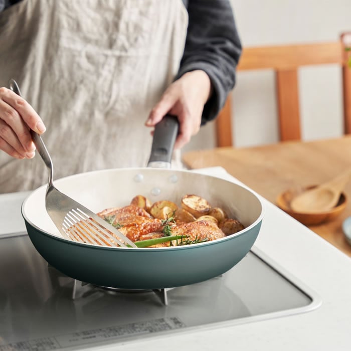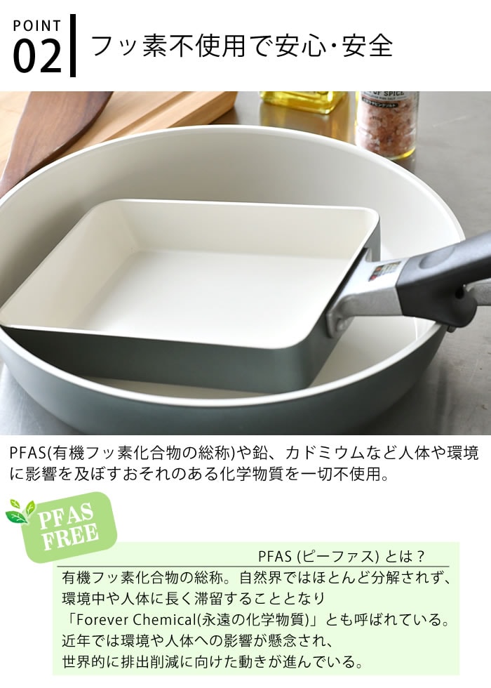 フッ素不使用で安心安全! 落ち着きのあるカラーがキッチンに馴染む「セラブリッド セラミック フライパン 26cm」 PFASや鉛、カドミウムなどの化学物質を一切含まず、安心して使えるフライパンです。 改良されたセラミック塗膜加工により、焦げ付きにくさの長持ち度が向上! 熱伝導がよく、遠赤外線効果で中までしっかりと熱が加わるため、食材の旨みをとじこめ、外はカリッと、中はジューシーに仕上がります。 ![]() ![]() ![]() ![]() ![]() ![]() ![]() ![]() ![]() |