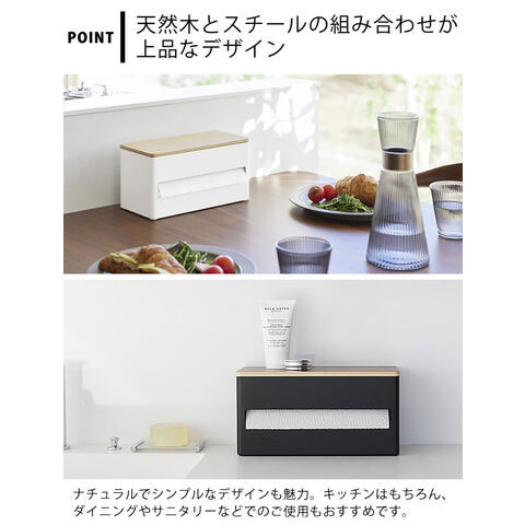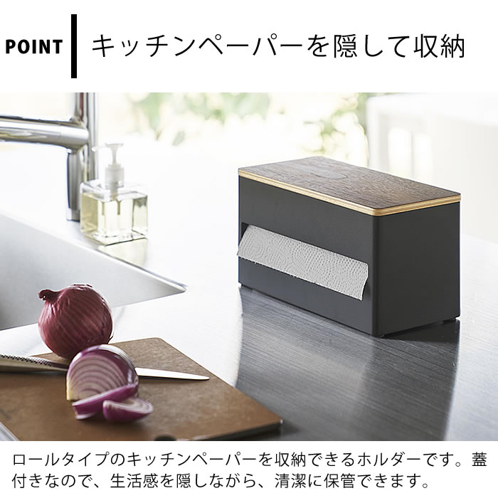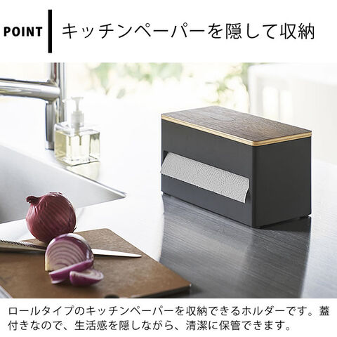 キッチンペーパーホルダー 片手で切れる 片手でカット隠せるキッチンペーパーホルダー リン RIN ペーパータオルホルダー 木製 蓋付き キッチンペーパー ロール 山崎実業 yamazaki ヤマジツ おしゃれ 卓上 1642 1643