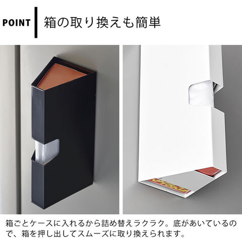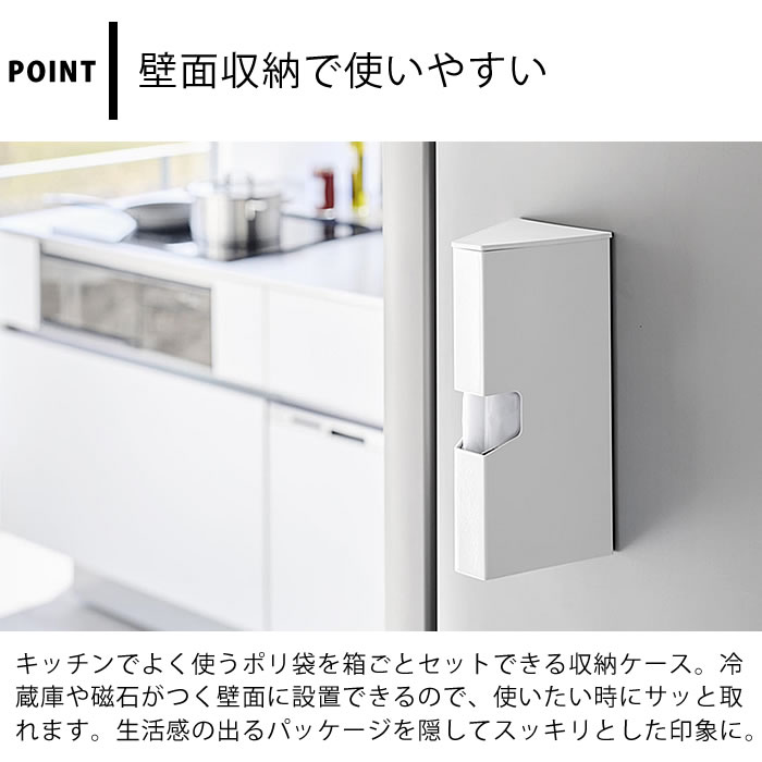 マグネットで壁面に設置 使用頻度の高いプラスチックバッグを、紙箱ごとセットできるマグネットのプラスチックバッグケース。 マグネットがつくキッチンパネルや冷蔵庫に取り付けて使えます。 重みがあるので安定感があり、置いて使用しても取り出しやすい。 底があいているので箱を押し出すことができ、取り換えもスムーズです。 ![]() ![]() ![]() ![]() ![]() ![]() ![]() ![]() |