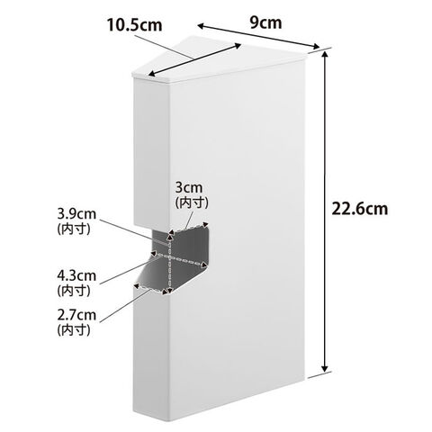 サイズ 外寸:約 W9×D10.5×H22.6cm 内寸:約 W2.5・8.5×D10×H22cm 取り出し口:約 W2.7~4.3×D3×H3.9cm |