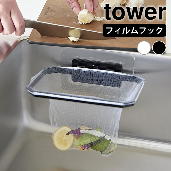 水切りネットホルダー フィルムフック折りたためる水切りネットホルダー タワー tower 水切りネット 三角コーナー ポリ袋ホルダー 浮かせる 生ゴミ入れ シンプル 省スペース 1566 1567 タワーシリーズ 山崎実業 yamazaki ヤマジツ 生ごみ