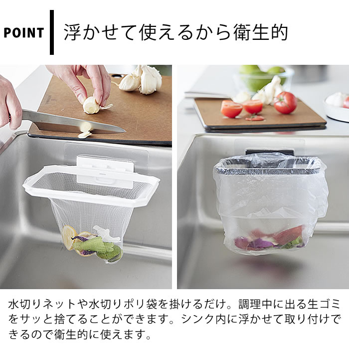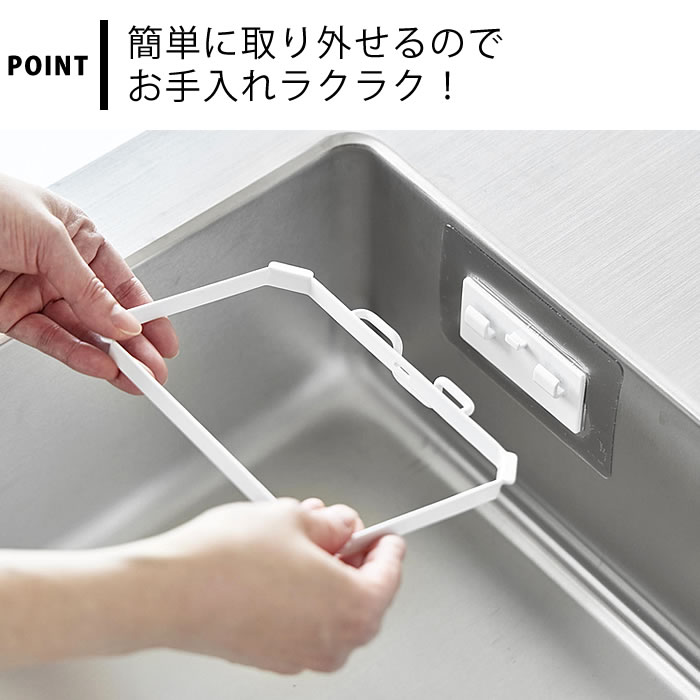 浮かせて衛生的 シンクの中に取り付けて見た目スッキリ! 浮かせて衛生的な水切りネットホルダー。 フィルムフックでお好みの位置に取り付け可能です。 使わないときは折りたたんで省スペースに。 簡単に取り外せるので、お手入れラクラク! 水切りポリ袋を取り付けてもご使用いただけます。 ![]() ![]() ![]() ![]() ![]() ![]() ![]() ![]() |