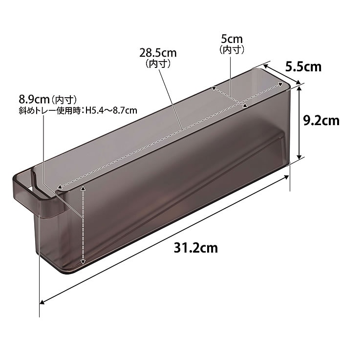 サイズ 外寸:約 W5.5×D31.2×H9.2cm 内寸:約 W5×D28.5×H8.9cm(斜めトレー使用時:H5.4~8.7cm) |