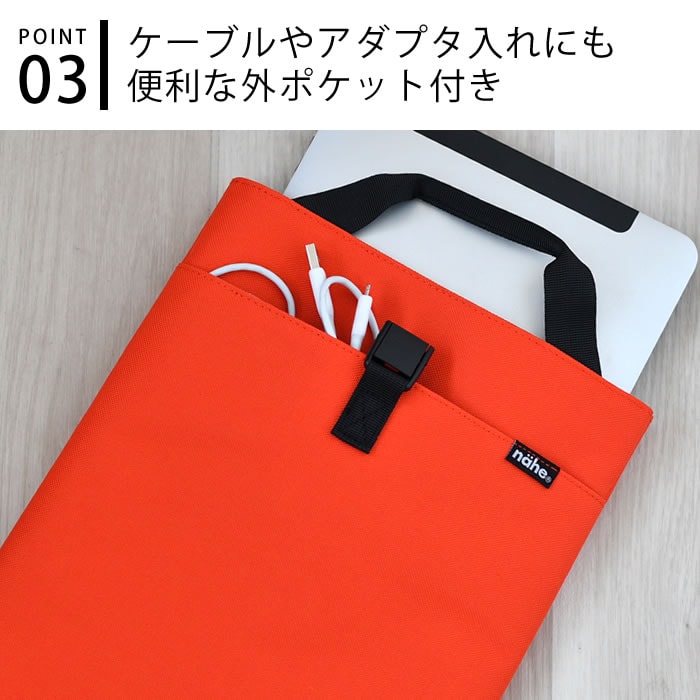 シンプルで使いやすいデザインが人気のnahe(ネーエ)シリーズから、タブレットスリーブが登場です。 ハンドルや、外ポケット付きで持ち運びにも便利! 薄型なのでランドセルやリュックにも入るコンパクトなサイズです。 タブレットスリーブとしてはもちろん、ドキュメントケースやバッグインバッグ、サブバッグなどなど幅広い用途でご活用頂けます。