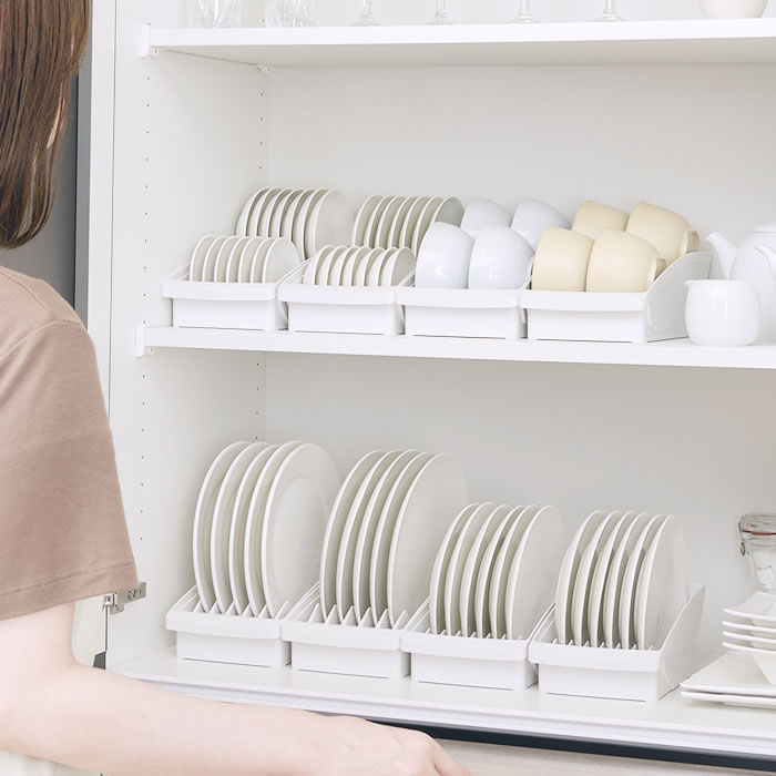 | 食器 収納 ケース トトノ 棚置き用 ディッシュスタンドR ミニ 食器棚 整理 直径 8~13cm 対応 キッチン 最大14枚 皿 小 整理整頓 抗菌加工 リッチェル プラスチック 立てる収納 取っ手 日本製 ホワイト ブラウン シンプル コンパクト |