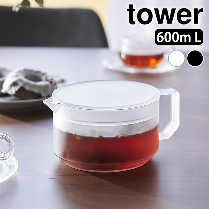 ティーポット おしゃれ ティーポット タワー tower 耐熱 電子レンジ 食洗機 シンプル 緑茶 タワーシリーズ フラット 山崎実業 yamazaki ヤマジツ お茶 紅茶 1672 1673 だし 茶こし ポット 600ml 急須 冷茶