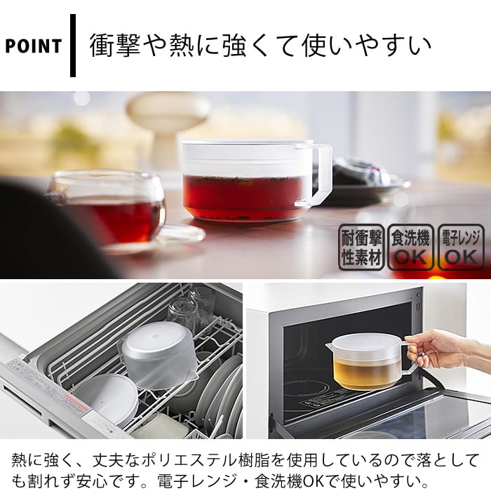 熱に強く、丈夫なコポリエステル樹脂を使用しているので落としても割れず安心です。電子レンジOKなので飲み物を温めることができます。