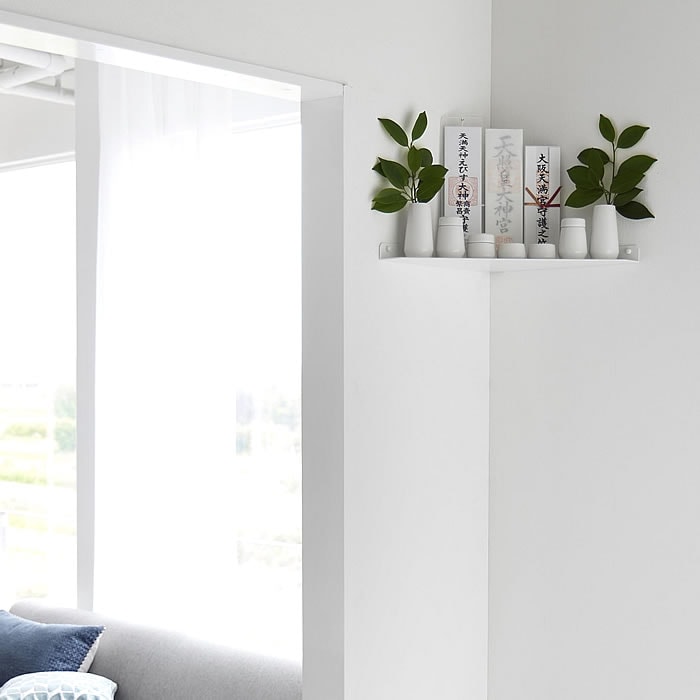 石こうボードピンで簡単に取り付け!モダンでシンプルな、リビングなどのお部屋のコーナーに祀れる神棚。