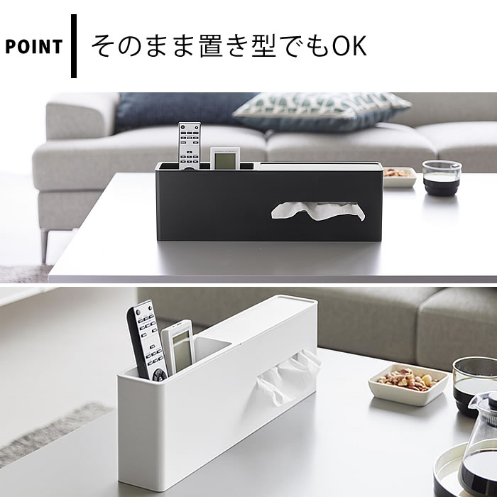 ゴミ箱以外にもリモコンやスマホの収納場所としても使用できます。ティッシュケースの蓋はトレーにもなり、スマホの一時置きにも便利です。
