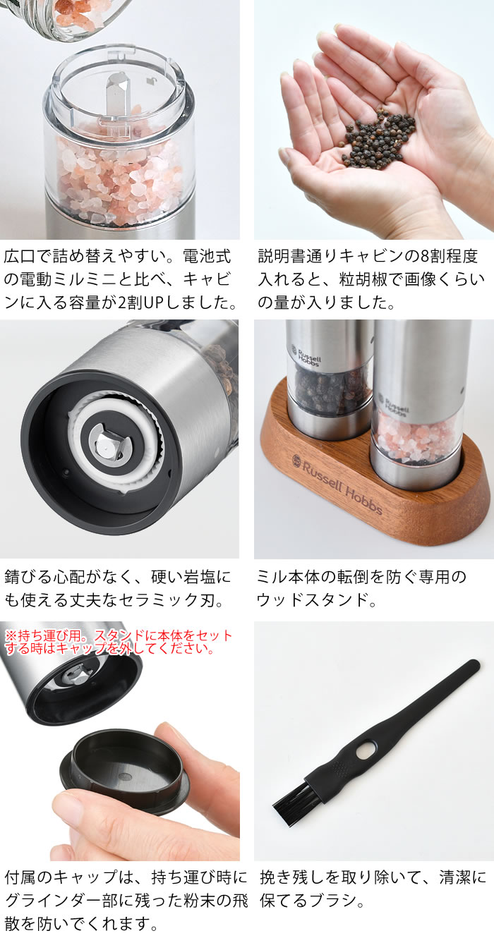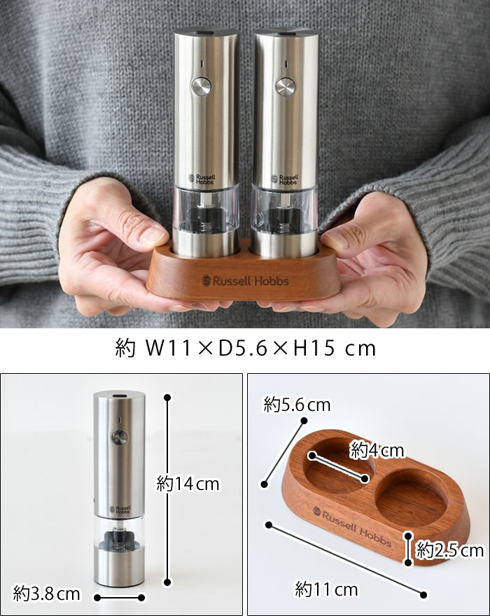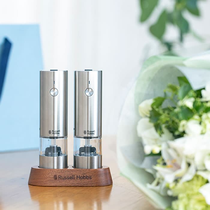 Russell Hobbs 電動ミル ソルト&ペッパー ウッドスタンド セット 7923JP