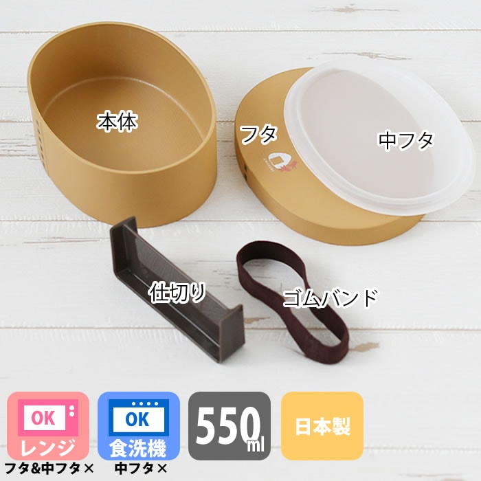 | お弁当箱 おしゃれ サブヒロモリ きちじつ わっぱ小判弁当 M お弁当箱 レンジ対応 お弁当箱 わっぱ 日本製 食洗機 木目調 木目風 可愛い 550ml 仕切り |