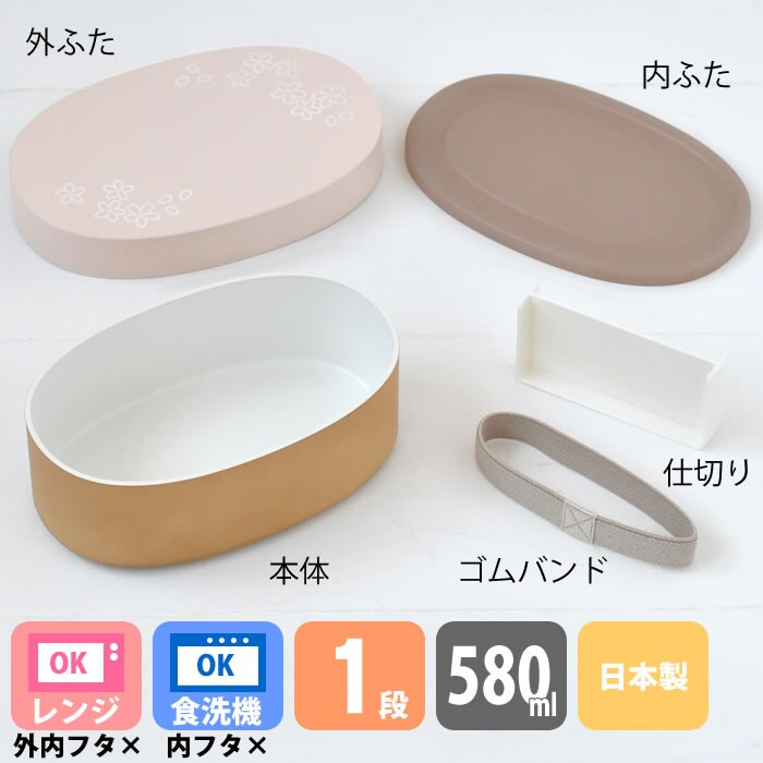 弁当箱 1段 サブヒロモリ はなごろも 一段小判弁当 ランチボックス 大人 仕切り レンジ対応 花柄 580ml シンプル 小判型 日本製 大人 洗いやすい 食洗機対応 社会人 中学生 高校生 女子 パッキンなし