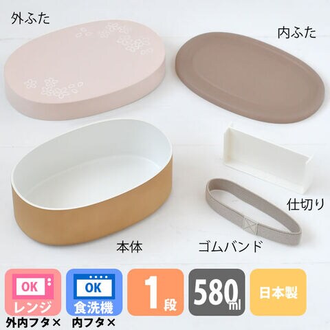 | 弁当箱 1段 サブヒロモリ はなごろも 一段小判弁当 ランチボックス 大人 仕切り レンジ対応 花柄 580ml シンプル 小判型 日本製 大人 洗いやすい 食洗機対応 社会人 中学生 高校生 女子 パッキンなし |