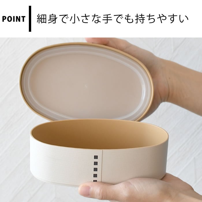 小さな手でも持ちやすい! 桜が舞い、暖かな季節の訪れをイメージした"はなごろも"シリーズから、わっぱ小判弁当箱1段。 外フタに描かれた桜の花びらが華やかな印象。 少し細身の形状で小さな手でも持ちやすい。 側面にはつなぎ目を再現した加工が施されていて、まるで本物のわっぱ弁当のような仕上がり。 外フタと中ブタを外せば電子レンジで温められる! パッキンがないのでお手入れもラクラク。 はなごろもシリーズで揃えて、素敵なランチタイムを♪ ![]() ![]() ![]() ![]() ![]() ![]() ![]() ![]() |