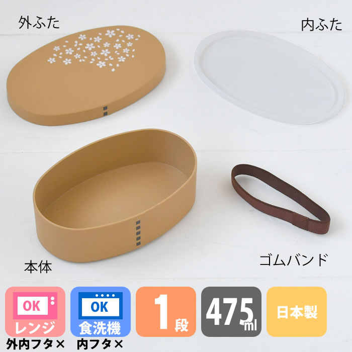 弁当箱 1段 サブヒロモリ はなごろも わっぱ小判弁当 ランチボックス 大人 日本製 小判型 洗いやすい 475ml コンパクト 大人 シンプル パッキンなし 女子 中学生 高校生 社会人 レンジ対応 花柄 食洗機対応