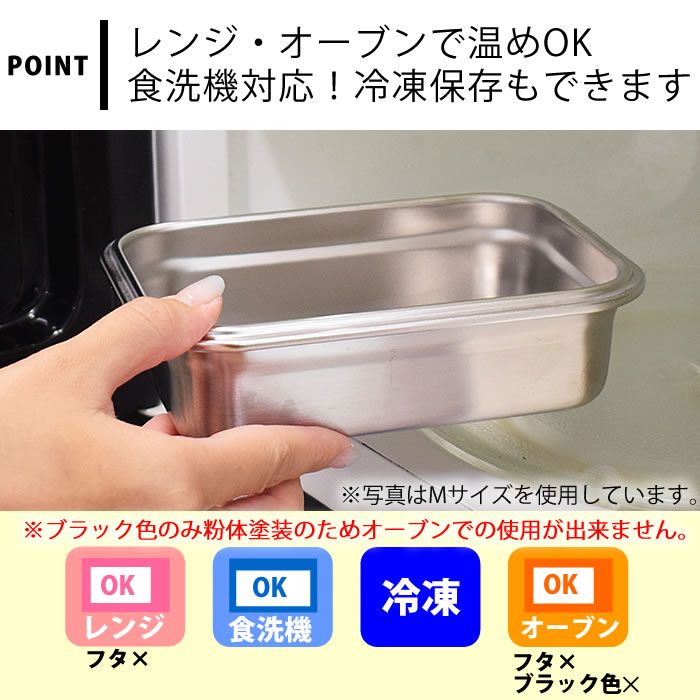 仕様 電子レンジ対応(フタは外す) 全パーツ食洗機対応 仕切り・パッキン付き 冷凍庫対応 軽くて丈夫、色やニオイが移りにくいステンレス製 |