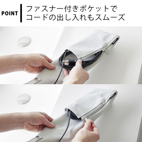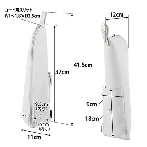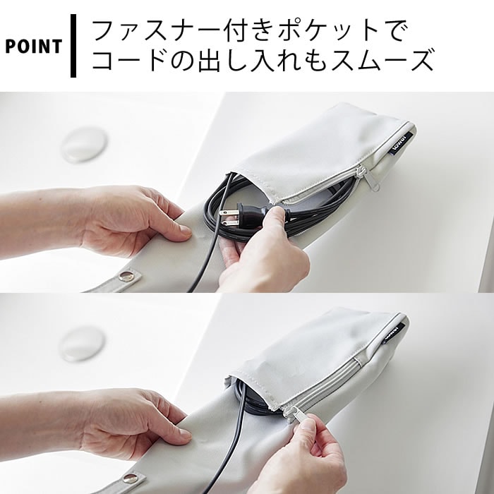 ※ヘアーアイロンのサイズや形状によっては収納できない物もあります。 ※縫製品のため、サイズに若干の個体差が生じることがあります。 ※電源を入れた状態のヘアーアイロンを収納したまま放置しないでくだい。 ※電源コードはポケットに収納してください。 |