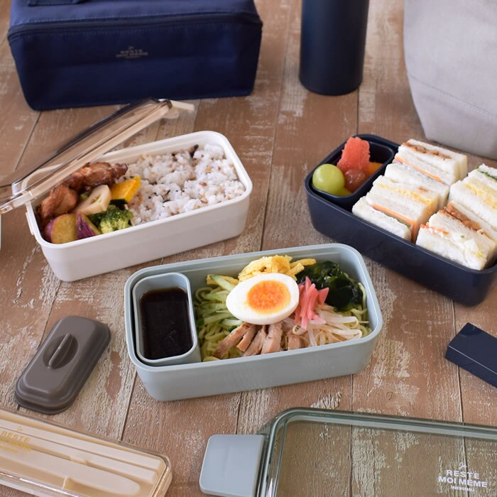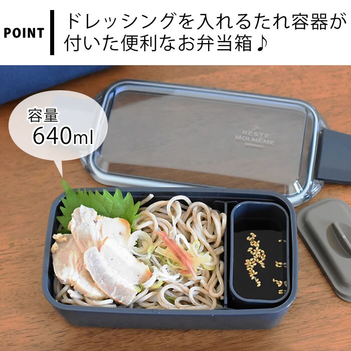 シンプルデザインで誰でも使いやすい「ユニモア 抗菌いろいろ使えるタイトランチ」。 容量本体640mlで深めの容器とたれ容器付きだから、麺ランチやサラダランチも楽しめます。 たれ容器は冷凍OK!前日に冷凍庫に入れておけば食べる頃に溶けてひんやり麺ランチを楽しめます。 本体・たれ容器・仕切りに抗菌使用で、たれ容器フタ以外食洗機OK。安心の日本製です。