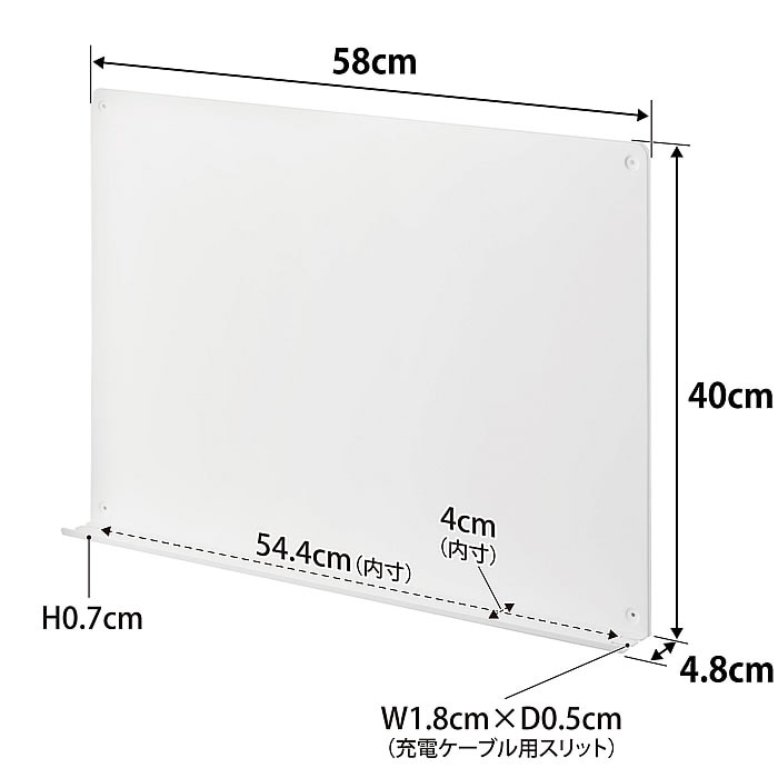 サイズ 約 W58×D4.8×H40cm トレー:W54.4×D4×H0.7cm ホルダー(充電ケーブル用スリット):W1.8×D0.5cm(1つあたり) |
