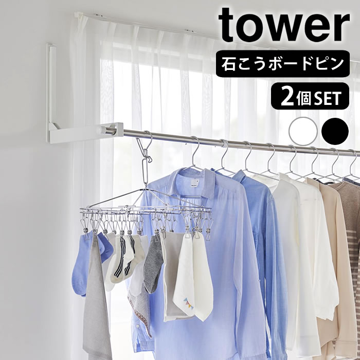 室内物干し 折りたたみ ウォール折り畳み物干し竿ホルダー タワー 2個組 石こうボード壁対応 tower 室内干し 部屋干し 物干し竿受け リビング タワーシリーズ 1921 1922 山崎実業 yamazaki ヤマジツ 洗濯物干し 白 黒