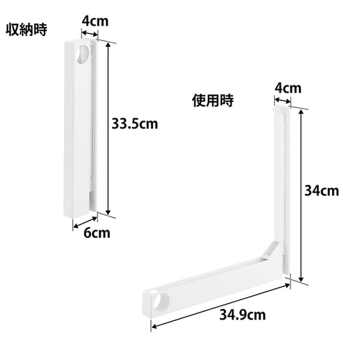 サイズ 収納時:約 W4×D6×H33.5cm(1つあたり) 使用時:約 W4×D34.9×H34cm(1つあたり) |