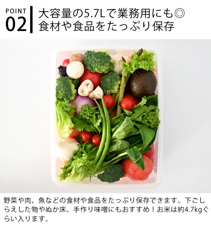 | 保存容器 食品 エンバランス レクタングルコンテナ 5.7L 保存容器 大容量 野菜 ぬか床 お米 作り置き シンプル エンバランス加工 角型 プラスチック BPAフリー 鮮度 保持 鮮度保持 保存 キッチン フードストッカー 業務用 日本 |