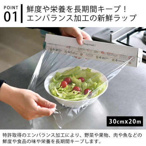 | 保存 ラップ エンバランス バランスラップ 30cm幅 食品 保存 ラップ 食品用ラップフィルム 台所用品 ラップフィルム 日本 消耗品 BPAフリー 耐熱温度 -70度から110度 ポリエチレン 鮮度 キッチンラップ 30cm 20m 無添加 キッチン |