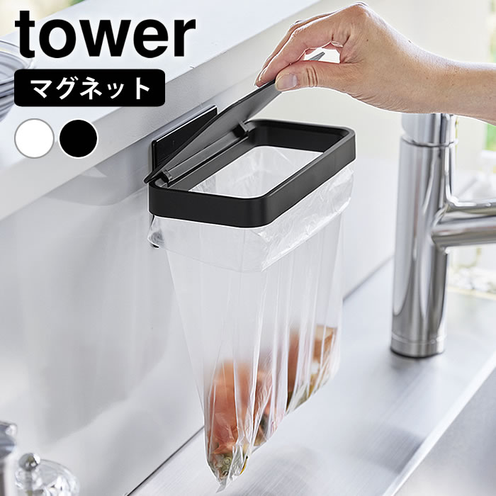 生ゴミ ゴミ箱 マグネット蓋付きポリ袋ホルダー タワー tower 三角コーナー 生ゴミ入れ ふた付き 磁石 ごみ箱 キッチン 1919 1920 おしゃれ シンプル 生ごみ 衛生的 タワーシリーズ 壁面 シンク 山崎実業 yamazaki ヤマジツ 白 黒