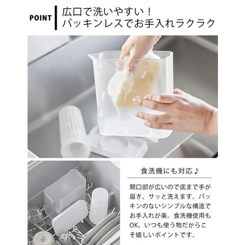 冷水筒 パッキンなし 棚に入れられる冷水筒 タワー 1 tower ピッチャー 麦茶ポット スリムジャグ 広口 おしゃれ 茶こし フィルター付き 洗いやすい 山崎実業 yamazaki ヤマジツ 冷水ポット 食洗機対応 1690 1691 タワーシリーズ