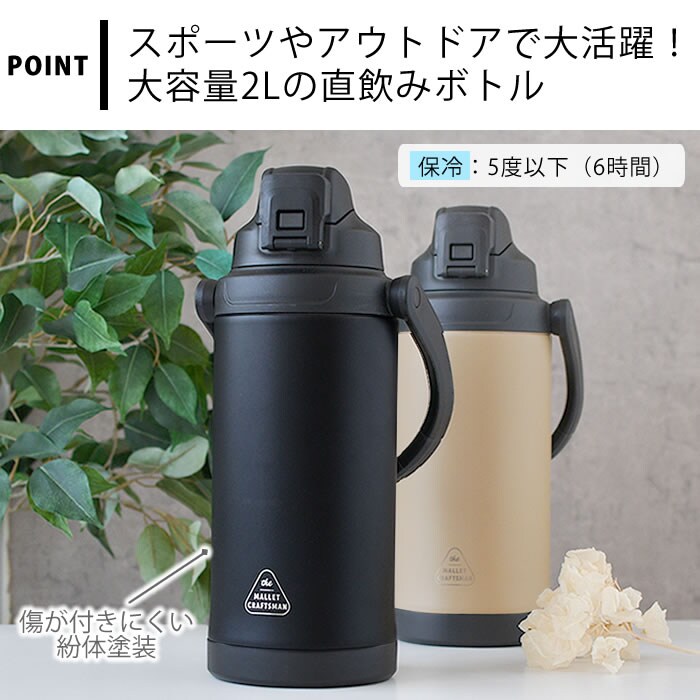 大容量2リットルの「マリット ステンレスワンプッシュ直飲みボトル」。